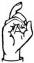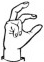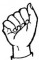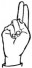 На ћирилици написано АЛЕН БИЗУМИЋ састоји се из 11 слова [?]. Исписано ћириличном једноручном азбуком за глувонеме: